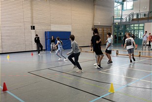 Beim Spieletag traten die Klassen in verschiedenen Spielen wie "Ball über die Schnur" und "Völkerball" gegeneinander an. Das Gewinnerteam spielte dann am Ende gegen das Lehrerteam. Schulsiegen wurde dieses Jahr die KOOP1.